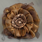 This is a floral design of the Khaleeji Flower Hair Clips. It includes Rhinestones and Ribbons, in addition to the basic flower petals.